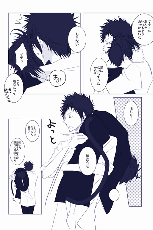 突然猫耳を描きたくなったから描いたよ漫画 いつもなら横抱きにさせるとこですが猫なので猫っぽいだっこ(?)で〆 しかも猫耳生えたヒバリは一体これからどうするのかさっぱり分からないまま〆 ヒバリのことだから何事もなかったかのように過ごしていくと思います そして山本も何事もなかったかのようにヒバリを可愛がって過ごしていくと思います ちなみに私はどちらかというと後天性猫耳派です! ある日突然耳生えちゃったよ〜的なのが好きです。先天性も可愛いけどね!